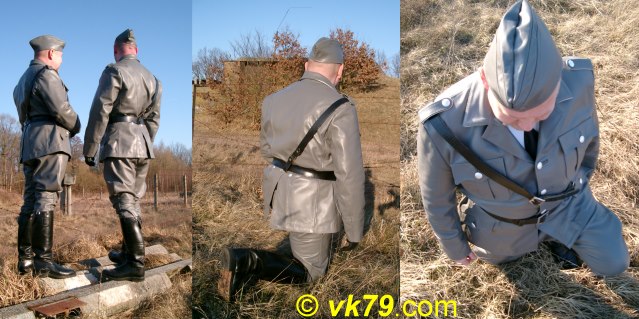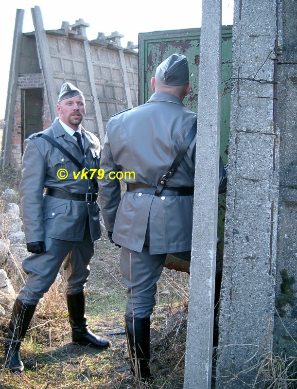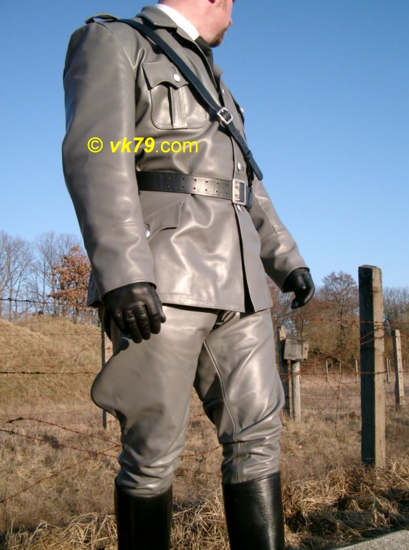 | Die deutschen Uniformbreeches, das Uniformjackett und das Käppi werden aus grauem Leder nach original deutschem Schnitt auf Maß hergestellt. |